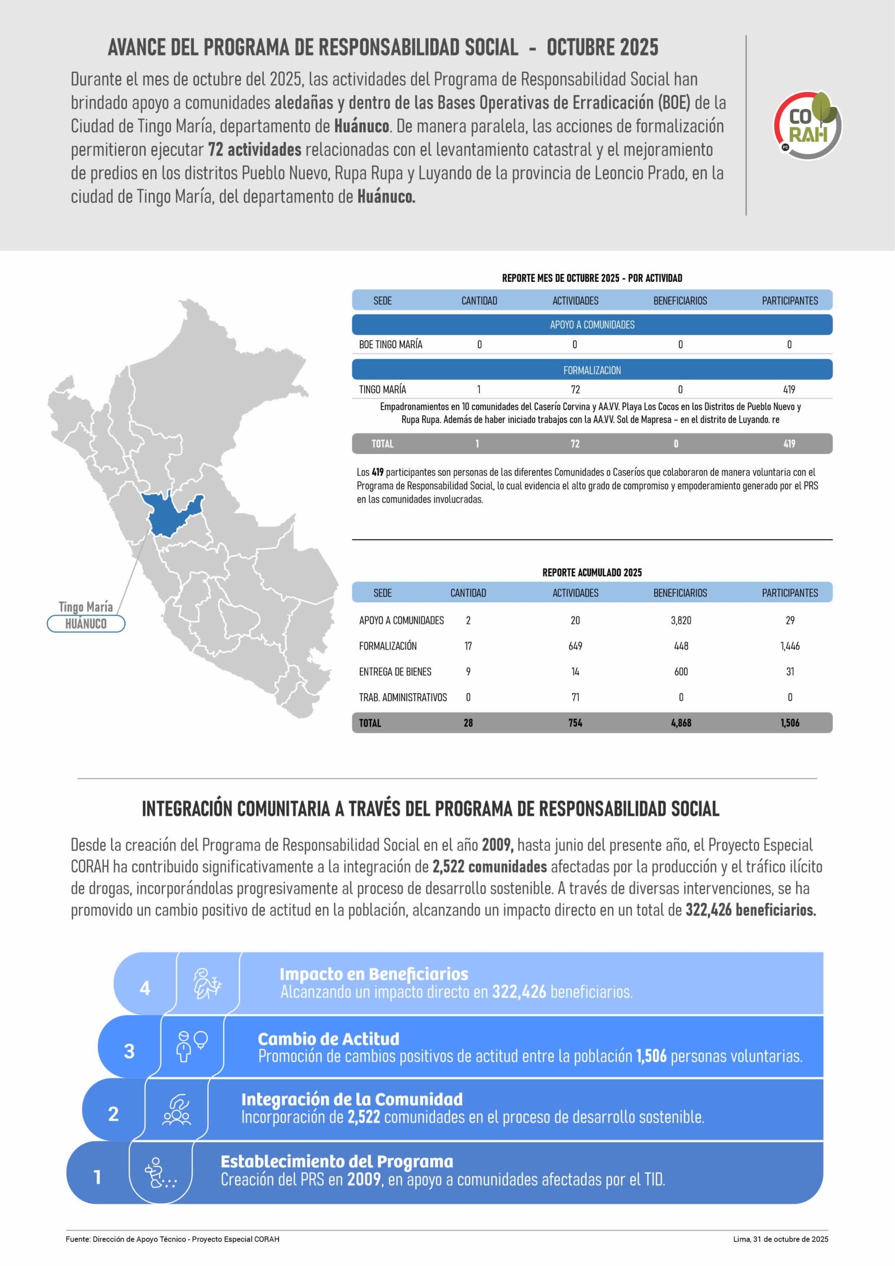 Fuente: Dirección de Operaciones – CORAH